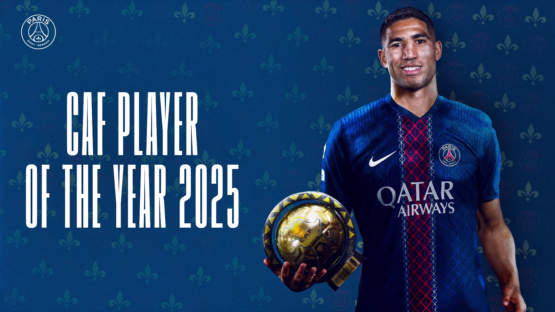 Considéré comme l’un des meilleurs défenseurs du monde, le natif de Madrid écrit une nouvelle page de l’histoire du football africain et du Paris Saint-Germain. Il devient ainsi le premier joueur du Club de la capitale à remporter le titre de Meilleur Joueur Africain de l’année, et le premier Marocain à décrocher ce titre depuis Mustapha Hadji en 1998.