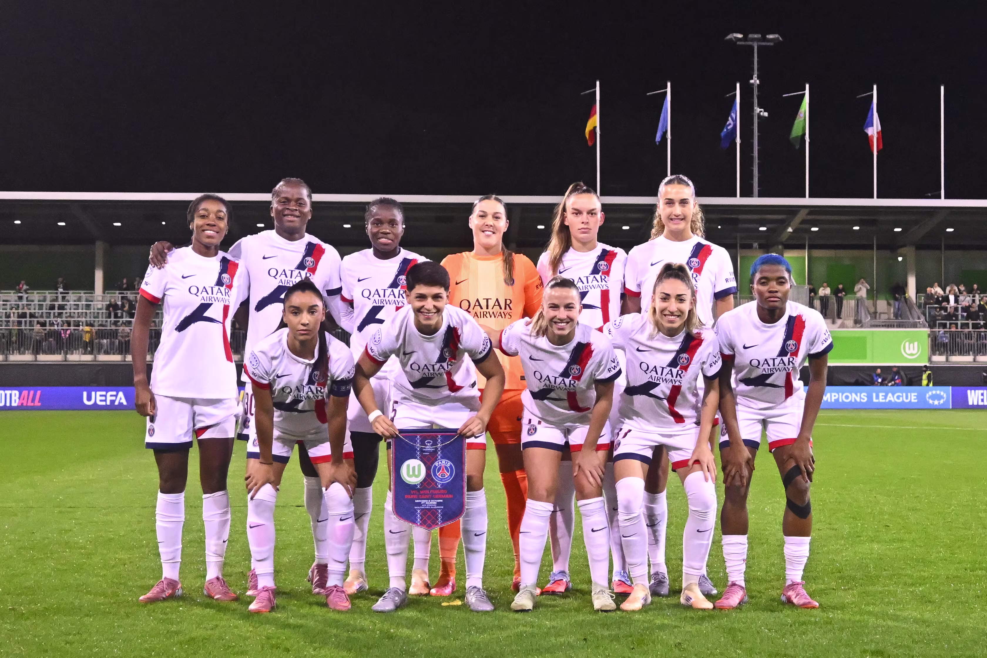 Et c’est un déplacement à Wolfsburg qui se présente aux joueuses de Paulo César en entrée, un véritable test pour nos Parisiennes, face à une opposition forte et habituée aux joutes européennes. Le coach parisien décide de lancer un onze en 3-5-2, avec Gaetino, De Almeida et Mbock sur la ligne défensive. Carmona et Ajibade sur les ailes, entourant Karchaoui, Groenen et Echegini, en soutien de Kanjinga et Leuchter.