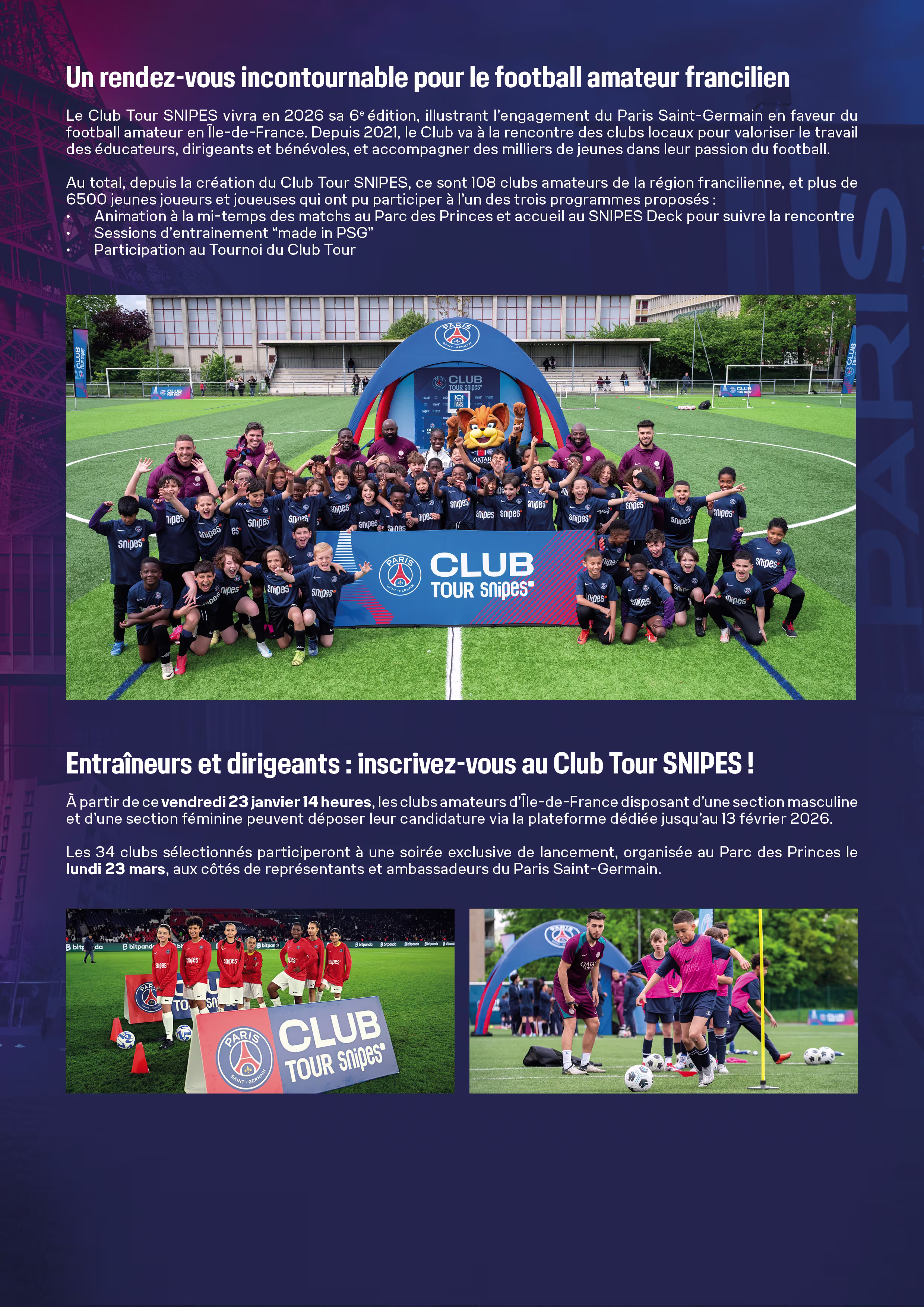 Ouverture des inscriptions : 2 000 jeunes franciliens vont vivre une journée dans la peau d’un joueur du Paris Saint-Germain