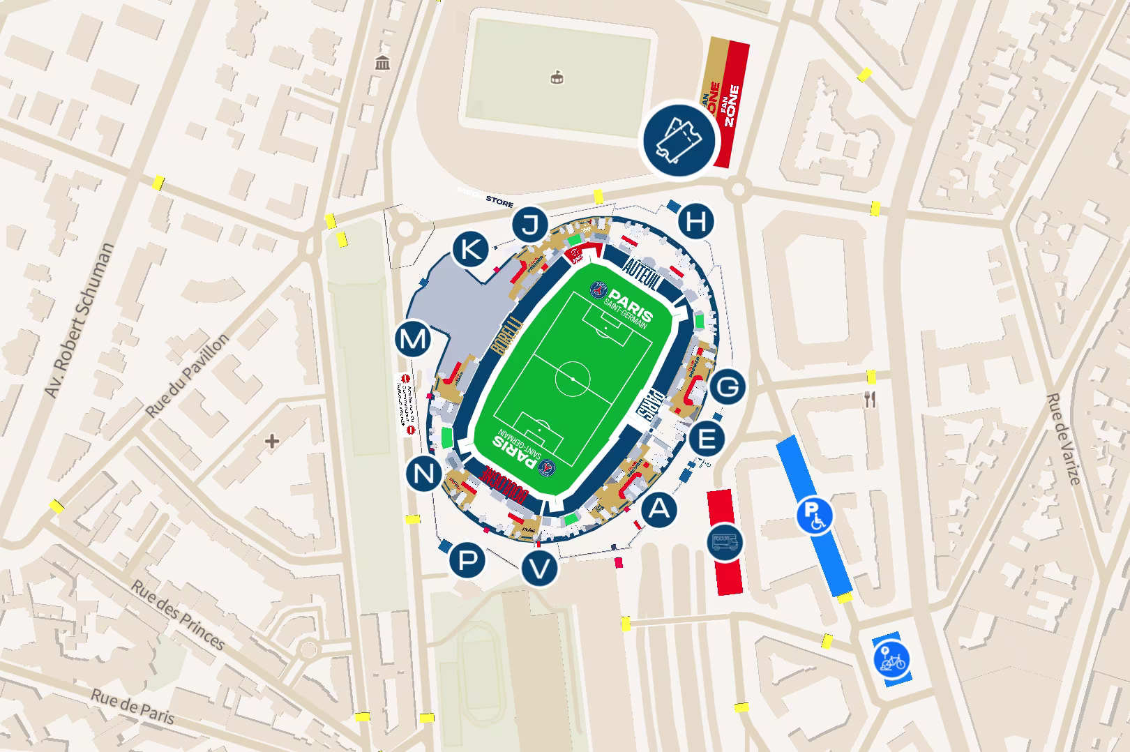 Rendez-vous dès maintenant sur map.psg.fr pour préparer votre venue au Parc des Princes et vivre pleinement votre moment Rouge & Bleu.
