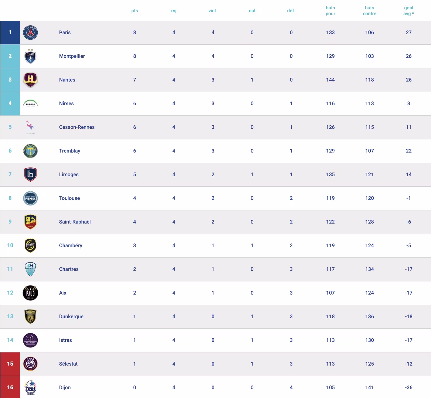 Vendredi soir, Dunkerque tentera de signer sa première victoire de la saison lors de la réception de Nîmes, solide quatrième de Liqui Moly StarLigue. Vainqueur de ses deux derniers matches après s’être incliné lors des deux premiers, Toulouse cherchera de son côté à poursuivre sa remontée au classement face à Aix, en grande difficulté jusqu’ici. Autre formation en manque de repères dans ce début de saison, Sélestat affrontera Chartres dans un duel qui s’annonce déjà important dans la course au maintien. Enfin, Tremblay visera une quatrième victoire en cinq matches lors de la réception d’Istres, toujours en quête de son premier succès.