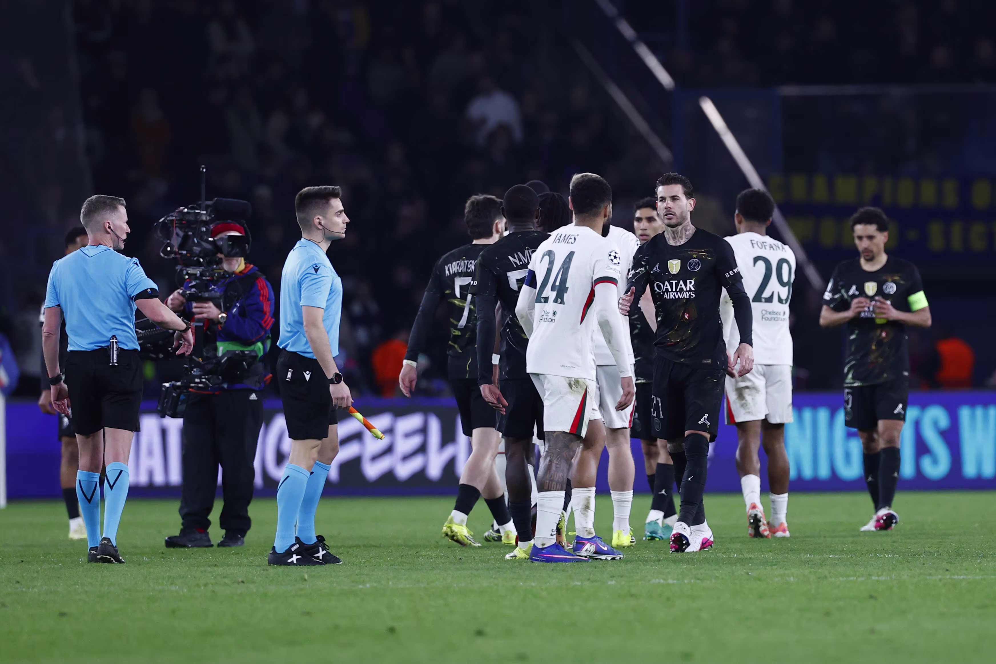S'ils sont avertis ce soir, Mendes côté Paris et Fernandez et Santos côté Chelsea seront suspendus lors du match retour.